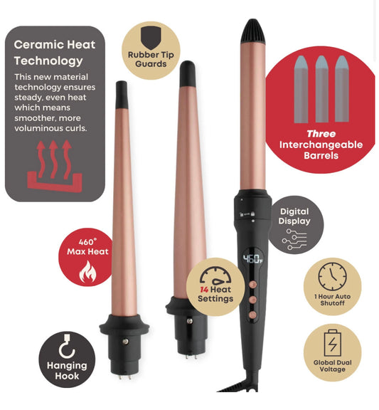 Hot & Hotter 3n1 Digital Curling Wand Set