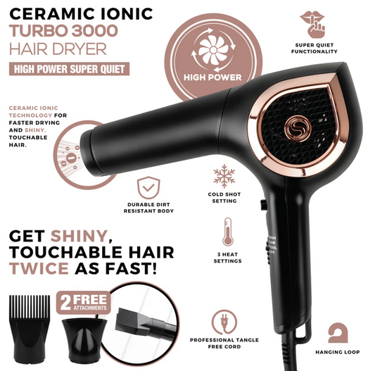 Hot & Hotter Ceramic Turbo 3000 Hair Dryer
